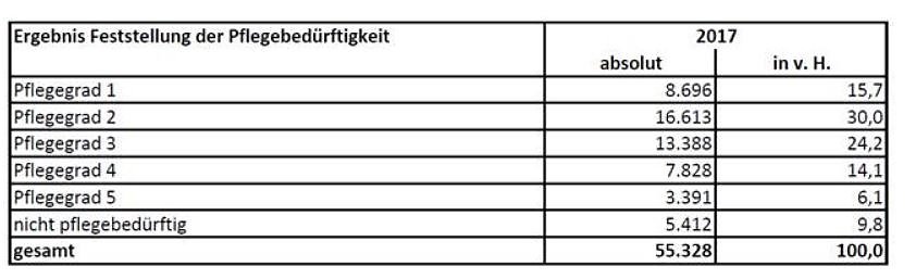 Hintergrund: Unter den 55.328 Anträgen sind sowohl Erst- als auch Folge- und Widerspruchsbegutachtungen durch den MDK. Nicht alle rund 95.000 Pflegebedürftigen in Thüringen mussten neu begutachtet werden, da eine automatische Überführung stattgefunden hat. Grundsätzlich wurde nur vom MDK begutachtet, wer seit dem 1.1.2017 neu pflegebedürftig geworden ist oder seine Einstufung überprüfen lassen wollte.