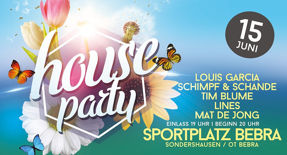 Autor: khhDas Festwochenende beginnt am Freitag, den 15. Juni 2018, mit einer großen Houseparty. Ab 20 Uhr werden die DJs LOUIS GARCIA, SCHIMPF & SCHANDE, TIM BLUME, LINES und MAT DE JONG alle Gäste zum Tanzen bringen. Der Einlass beginnt 19 Uhr und wer bis 21:30 Uhr seine Eintrittskarte kauft, erhält diese für nur 5 Euro. Alle, die etwas später den Weg auf den Sportplatz in Bebra finden, müssen dann 8 Euro bezahlen. Für Essen und Trinken ist natürlich gesorgt, so dass sich alle auf eine große Party freuen können.