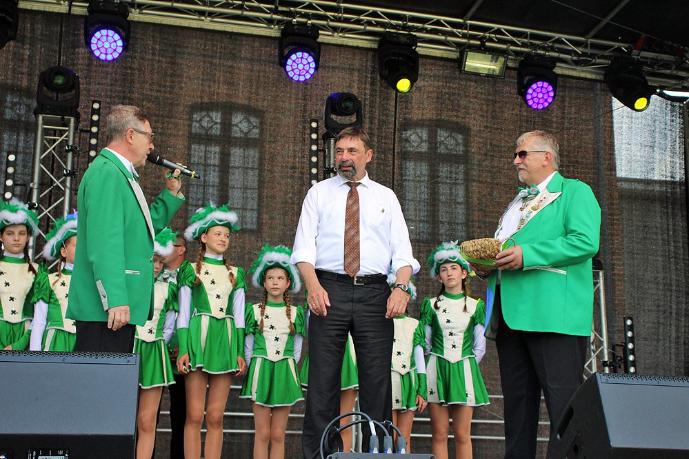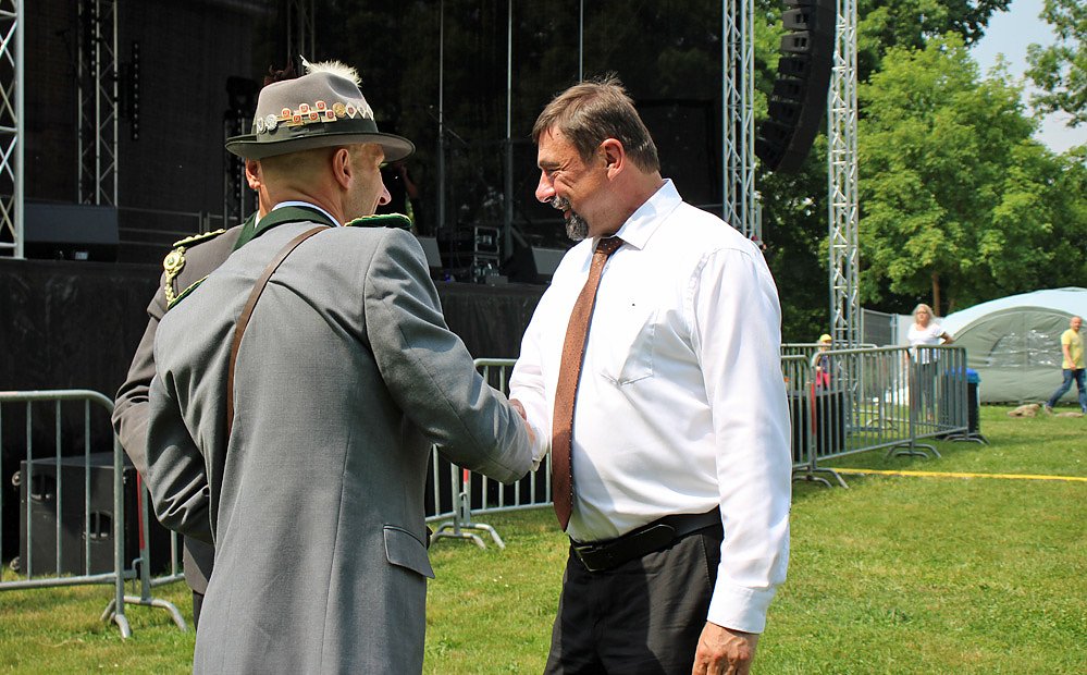 Und der Platz war gut gewählt, denn auf der großen Tribüne wird am Abend das Residenzfest eröffnet. Und zahlreich Bürger der Stadt Sondershausen hatten sich auf der Theaterwiese eingefunden, so auch der zukünftige Bürgermeister Steffen Grimm.