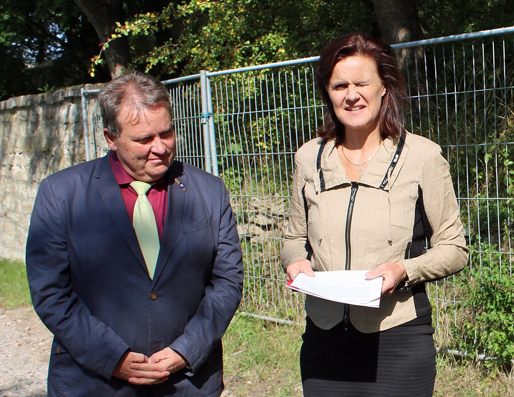 Hier Uwe Vogt mit Landrätin Antje Hochwind, als es einen Förderbescheid für den Schlosspark Ebeleben gab. Gerade der Schlosspark lag im besonders am Herzen.