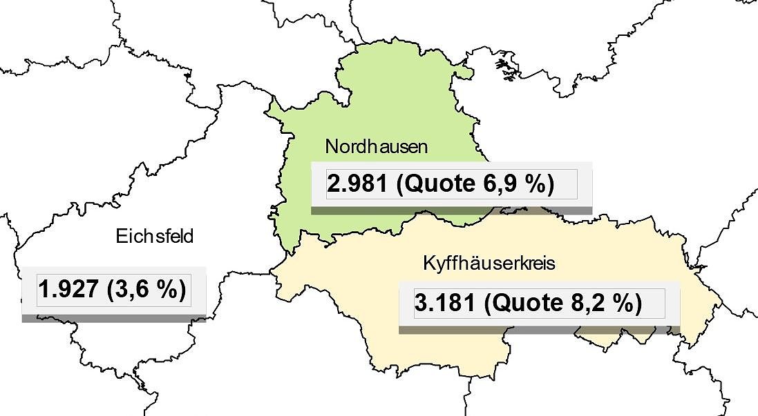 Das Minus im Kyffhäuserkreis lag bei 0,2 Punkten zum Vorjahr. Die Quote beträgt aktuell 8,2 Prozent.