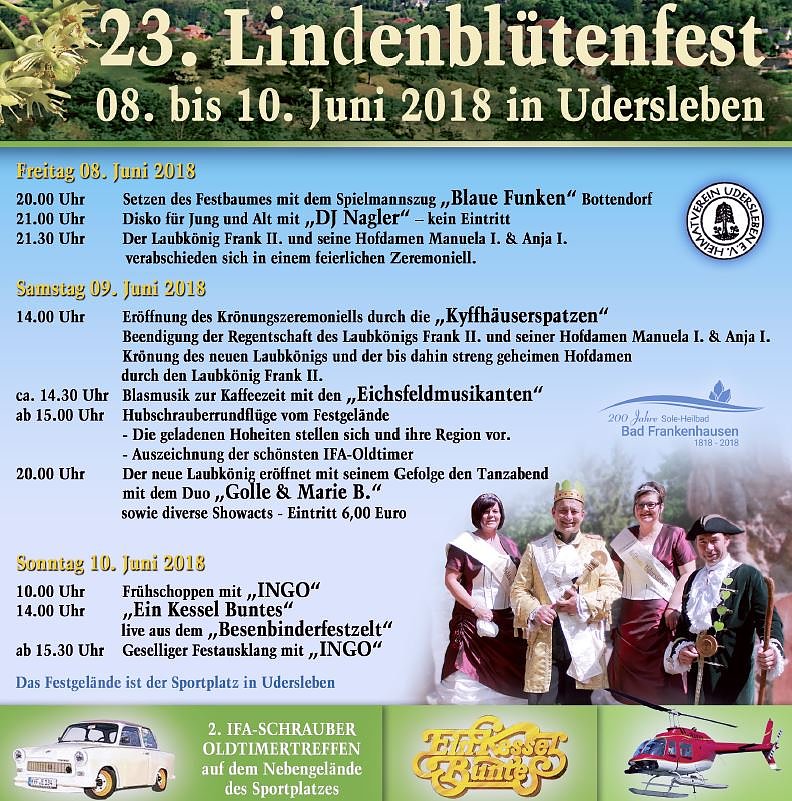 Programm zum 23. Lindenblütenfest 08. bis 10. Juni 2018 in Udersleben