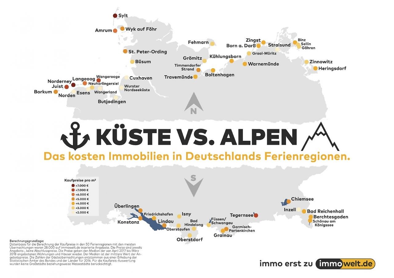 Wohnen, da wo andere Urlaub machen. Ist so ein Wunsch überhaupt bezahlbar? Wie teuer das Leben am Strand oder in den Bergen ist, unterscheidet sich stark nach Ferienregion. Auf den Inseln kostet Wohneigentum deutlich mehr als an der Küste. In Alpennähe oder am Bodensee liegen die Preise enger zusammen als im Norden...