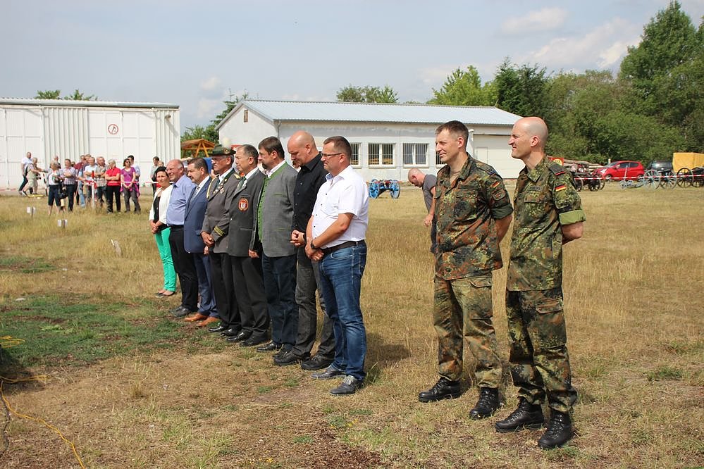 Als Gäste waren heute unter anderem dabei Vertreter des Schützenbundes Thüringen bzw. des Schützenbundes Sachsen Anhalt Wolfgang Luchs, Oberstleutnant Stephan Podolski Kommandeur des Feldwebel-/ Unteroffizieranwärter-Bataillon 1 und quasi Hausherr, Bürgermeister Joachim Kreyer und Bürgermeister in Spe Steffen Grimm. Volker Grabow vom Verband Deutscher Schwarzpulver Kanoniere e.V. (VDSK) aus Allstedt begrüßte die Gäste.