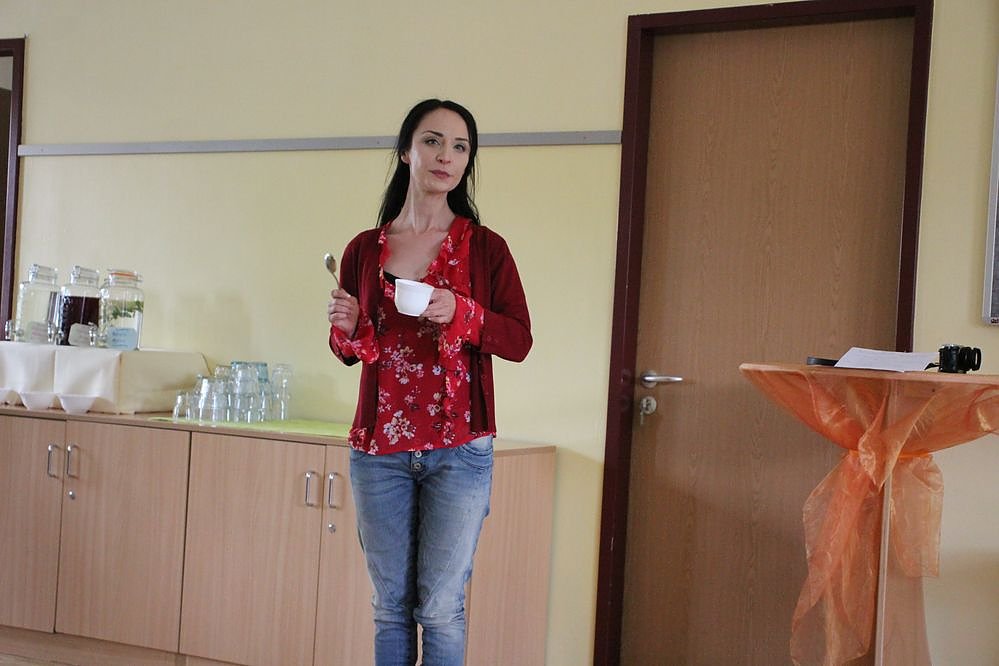 Die Leiterin des Hasenholz-Oestertal-Centrum, Susanne Stadermann, benutzt immer als ihr Markenzeichen ein Tasse als Glocke und eröffnete das Fest mit Kaffee und selbst gemachten Kuchen, der wie immer sehr lecker war.