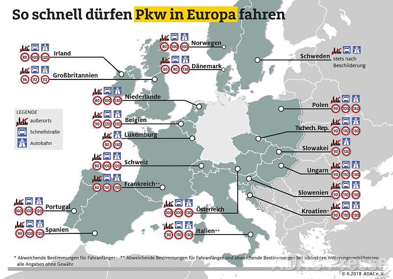 Tempolimits in Europa einhalten