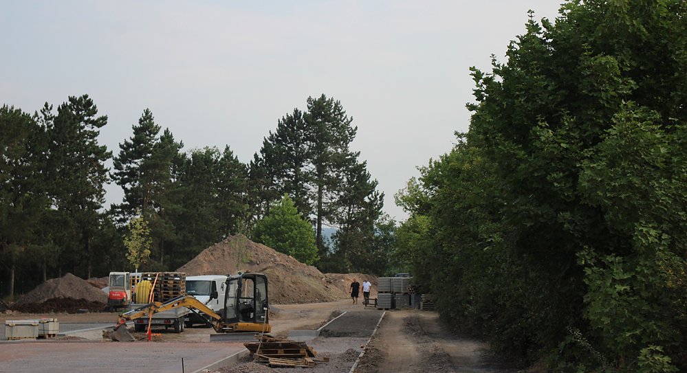Kräftig gebaut wird noch am Sportplatz, u.a. für Fußball, Basketball, Laufstrecke, Kugelstoßring und Weitsprunggrube. Für den Bürgermeister gab es noch die Information, dass die Stadt Gelände zurück bekommen wird (alles was hinter den Baggern liegt). Hier sieht der Zeitplan vor, dass die Baufirma erst am 30.9. fertig sein muss. Aber voraussichtlich wird man schon Ende August fertig.