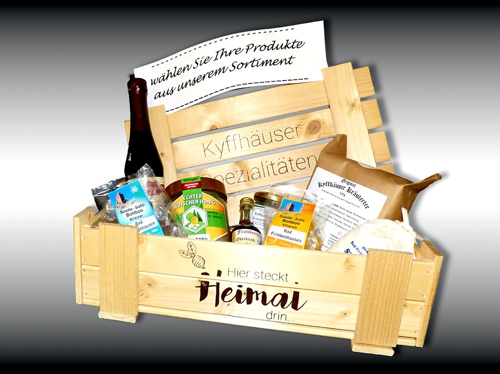 Eine Geschenkbox, die Sie selbst mit Erzeugnissen einheimischer Produzenten füllen können, ist ab sofort in der Tourist-Information Bad Frankenhausen erhältlich.