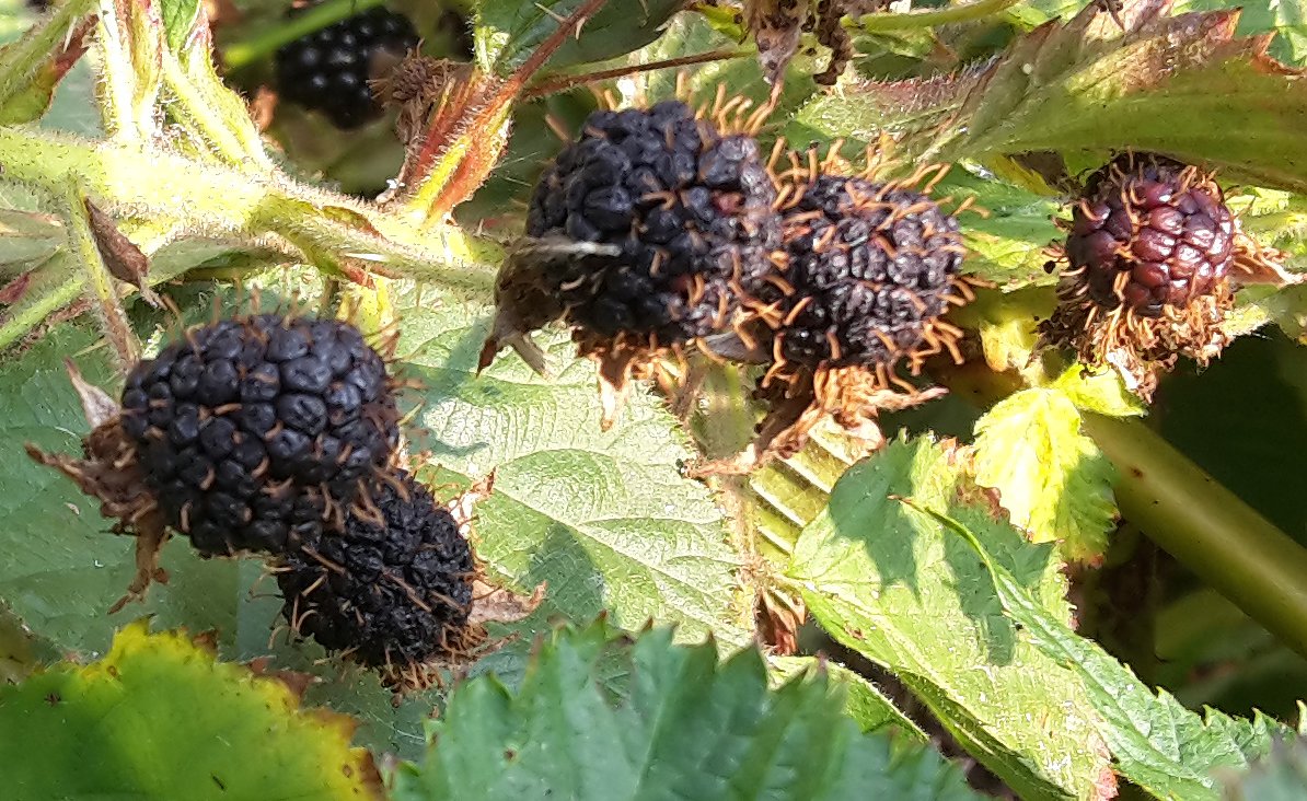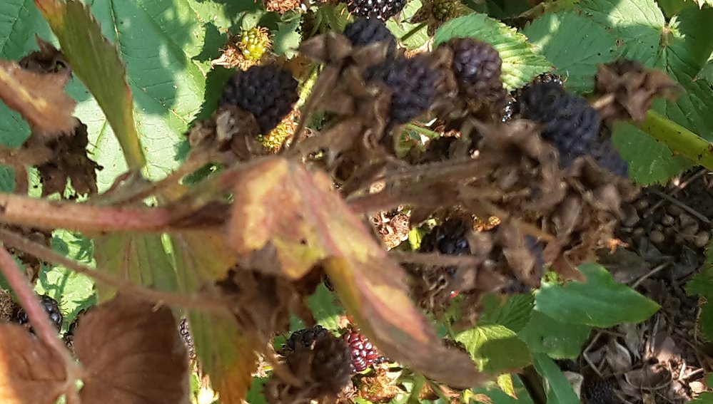 Aber das eine Brombeerhecke mit dem Ertrag wegen Trockenheit fast völlig ausfällt, war noch nie da. Das im Bild sind noch die guten Früchte.