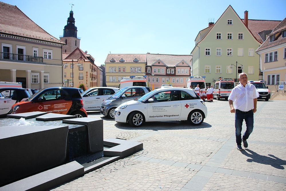 Was war das heute für ein Auflauf auf dem Markt von Sondershausen? DRK - Fahrzeuge und Mitarbeiter ohne Ende und kn entdeckte einen Tipp für heiße Tage...