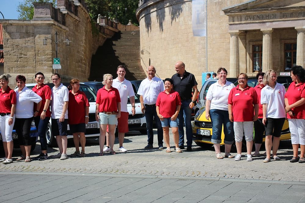 Die Anzahl der Fahrzeuge und auch nicht die Mitarbeiterinnen und Mitarbeiter der verschiedenen Bereiche des DRK (Rettungsdienst, Pflegedienst usw.) hat kn nicht gezählt, aber es waren ein ganze Menge.
