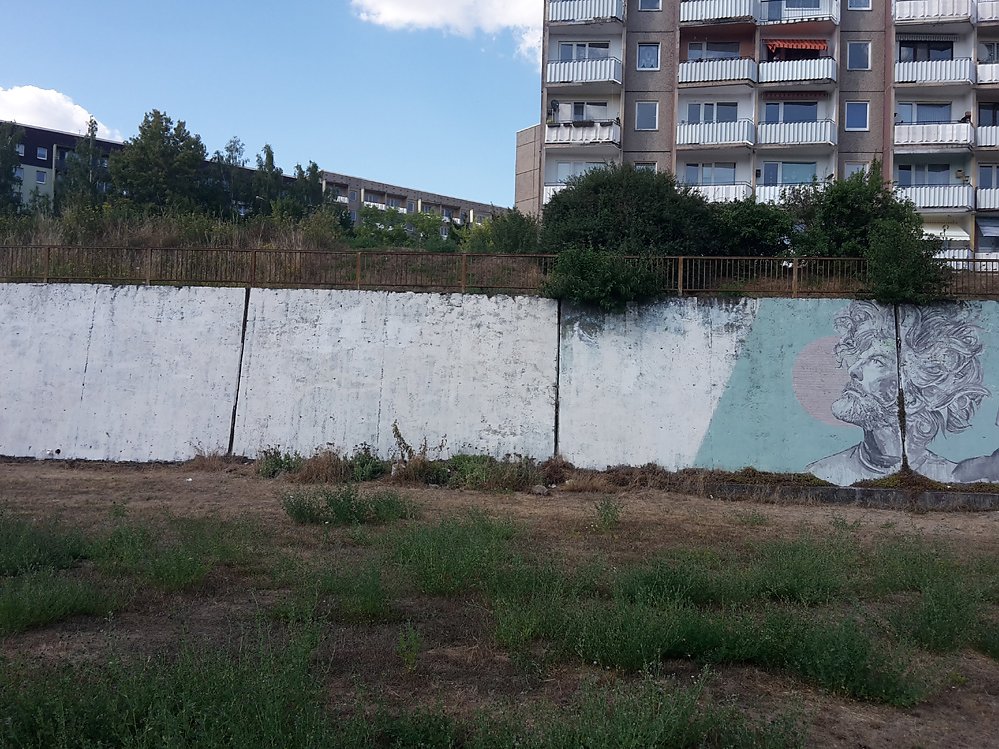 In einer Projektwoche vom 30.7. bis 3.8.2018 werden sich wieder Schülerinnen und Schüler mit der Technik des Grafity vertraut machen und zur Verschönerung des Wohngebietsbetragen. Die Wandfläche bietet noch etwas Platz.