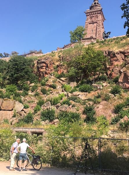 Die Besichtigung der Steilwand unterhalb des Kyffhäuser-Denkmals stand als erstes auf dem Programm. Nach drei Bauabschnitten im Jahr 2008 muss es nun weitergehen, um die großen Klüfte der Steilwand zu sichern. Kulturminister Herr Prof. Dr. Hoff machte sich am gestrigen Tag ein Bild von der Lage. Herr Dr. Heinz-Ulrich Thiele, Verwaltungsleiter im Landratsamt Kyffhäuserkreis, informierte über die Situation. Das Kyffhäuser-Denkmal ist ein national bedeutsames Kulturdenkmal, zudem spielt es für den Tourismus in der Region eine wichtige Rolle. Also haben wir geschaut, wie wir schnell und unbürokratisch helfen können, so Minister Hoff. In einer Kabinettsitzung Ende August wird über die Verwendung der Bundesmittel entschieden. So ist es vielleicht möglich, bis zu fünf Millionen Euro für die Sicherung der Steilwand zu bekommen.