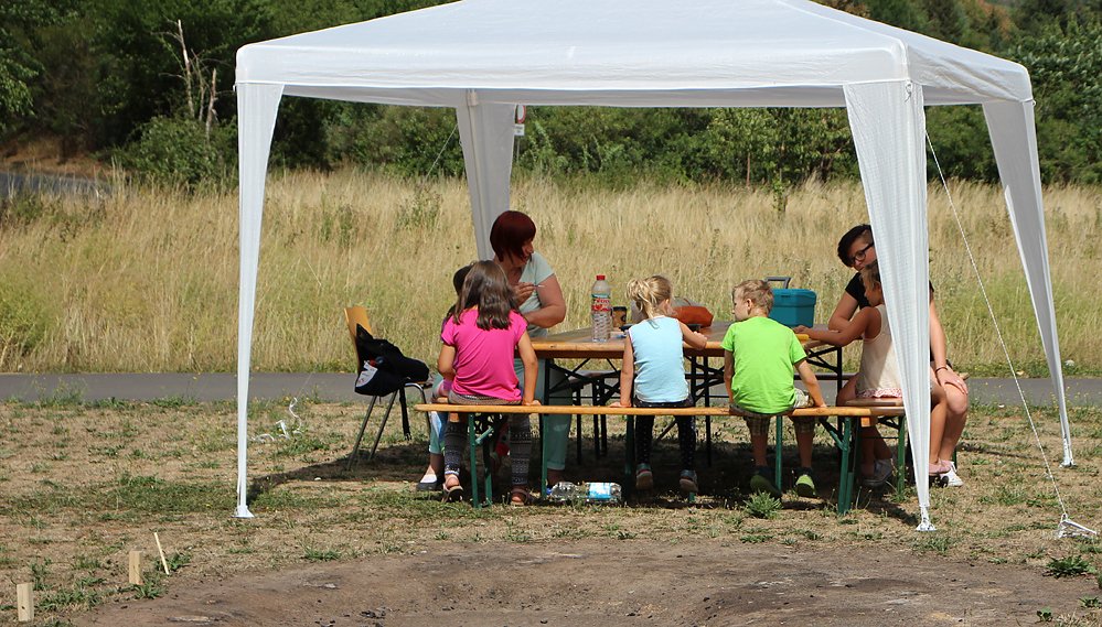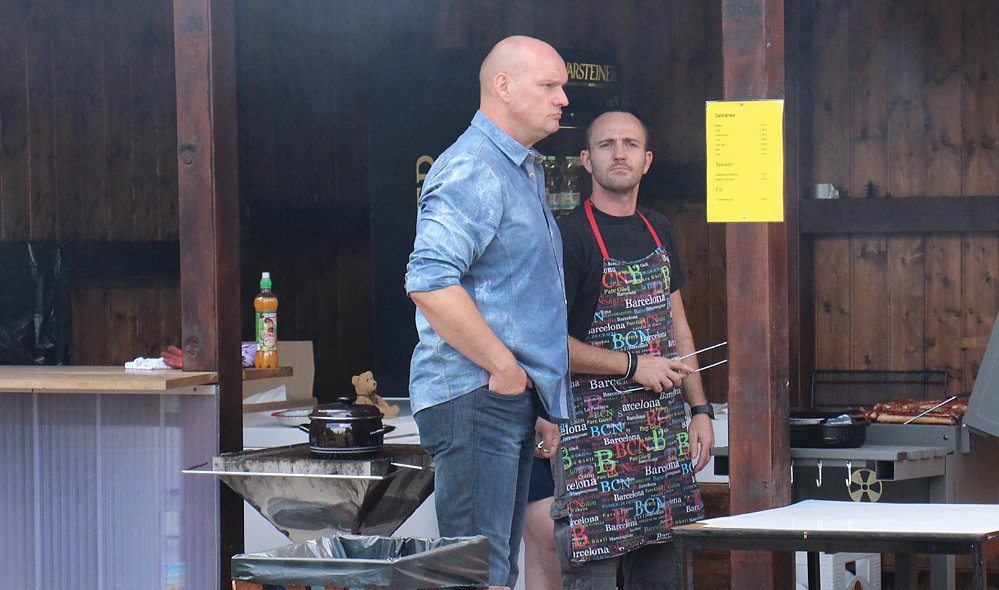 Bei Kaffee & Kuchen und Grill & Getränke ließ man die Ferien ausklingen, denn nicht nur Kinder und Jugendliche waren da, sondern auch manche Eltern. Auch Bürgermeister Steffen Grimm kam vorbei und ließ sich von Andy Flehming das Programm erläutern.