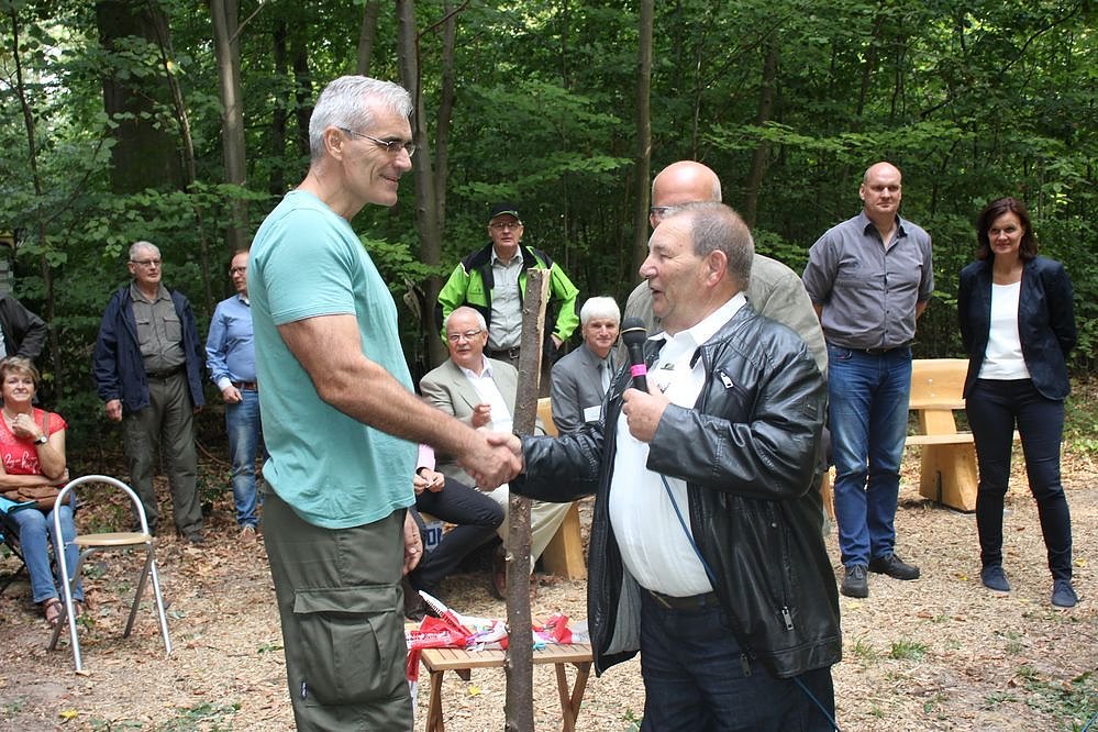 Landrätin Hochwind und Bürgermeister Grimm Grimm dankten all denen, die an der Gestaltung des Platzes an der Mutterblutbuche mitgewirkt haben. In den letzten Jahr war der Platz regelrecht zugewuchert, so dass man den Stumpf kaum noch gefunden hat. Beide sicherten dem Verein zu im Rahmen ihrer Möglichkeiten Unterstützung zu geben