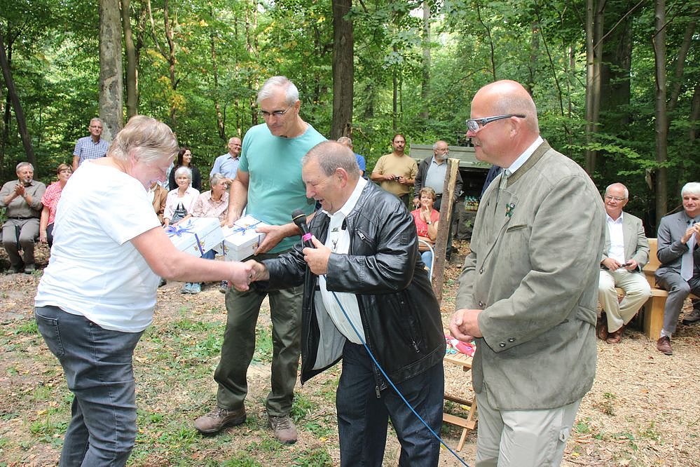 Ebenfalls eine kleines Geschenk erhielt Hanna Nagel. Sie hat mit ihren vielen Recherchen sehr viel zur Klärung der Geschichte der Mutterblutbuche beigetragen.