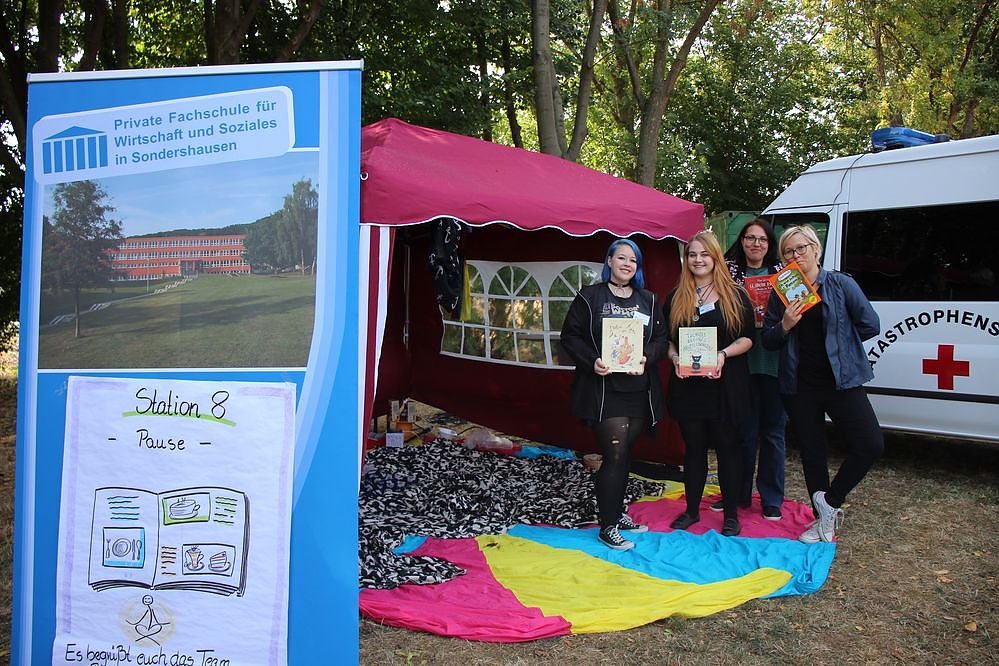 Mit Begeisterung dabei Studentinnen der Privaten Fachschule für Wirtschaft aus dem Borntal. Hier war eine Pausenstation und da wurde Vorgelesen.