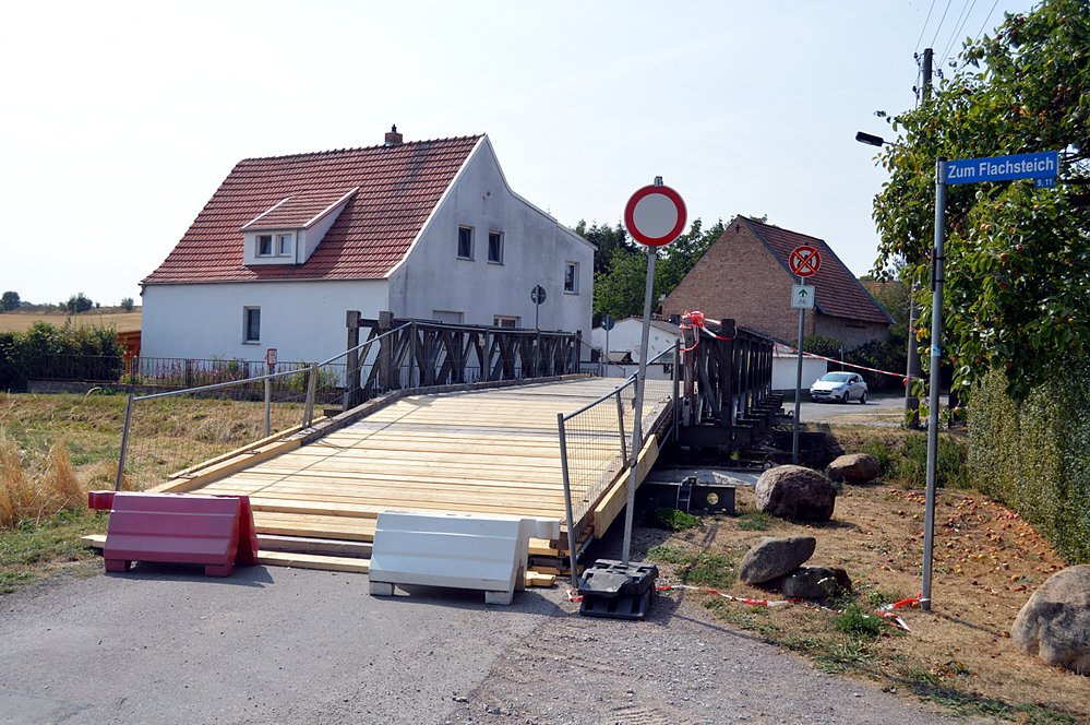 Aufgrund weiterer Anordnungen vom technischen Brückenprüfer zur Verkehrssicherheit kann die provisorische Brücke am Flachsteich im Ortsteil Thalebra nicht zum vorgesehenen Termin für den Verkehr freigegeben werden...