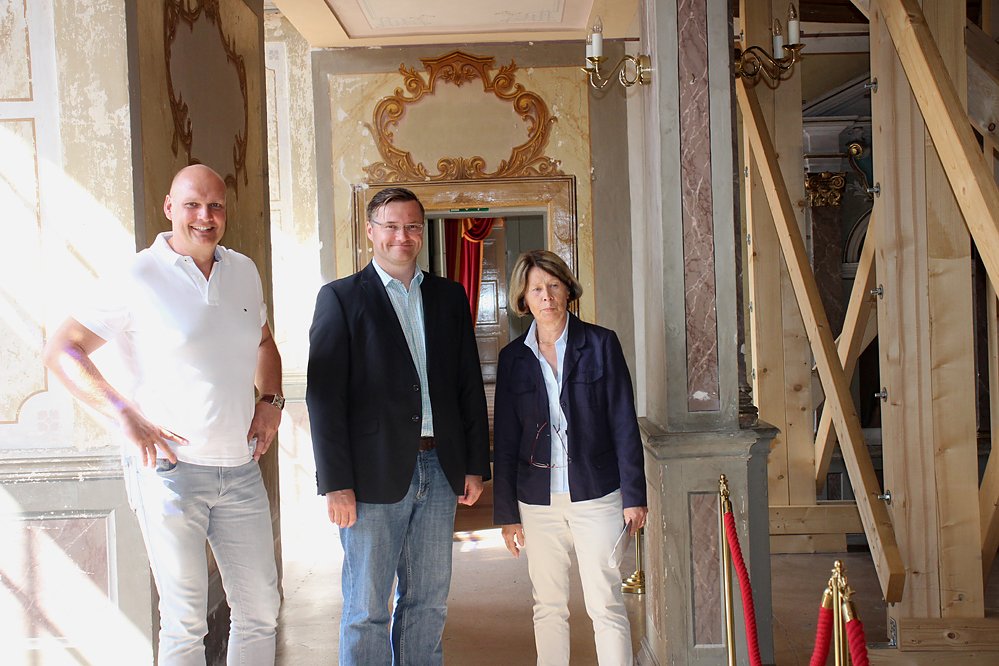 Von der Stiftung Thüringer Schlösser und Gärten veranlasste Stützmaßnahmen im Alten Nordflügel und der Auszug der Sammlungsdepots des Museums haben nun zur Wieder-Freigabe des Schlossflügels geführt. Bürgermeister Steffen Grimm, Stefan Schard und Museumleiterin Christa Hirschler besichtigten anschließend die früher gesperrten Bereiche. In der Bildergalerie alles was nach der weißen Tür kam.