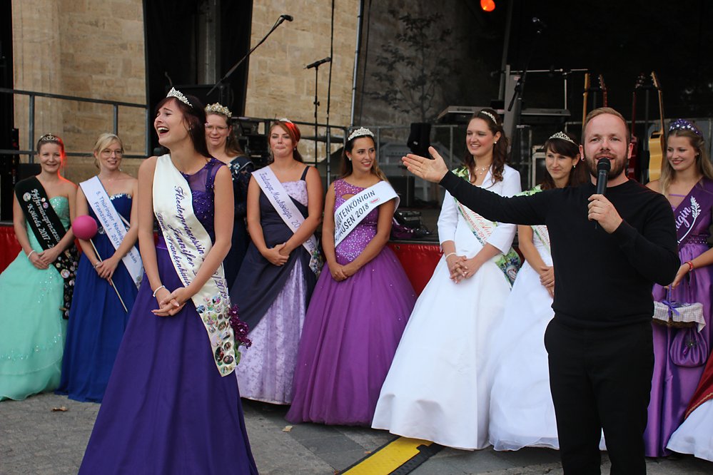 Zur Verabschiedung der bisherigen Weinprinzessin Shantel I. und der neuen Weinprinzessin Vanessa I. waren zahlreiche Hoheiten der näheren und weiteren Umgebung erschienen und sehr viel Publikum zum Klatschen.
