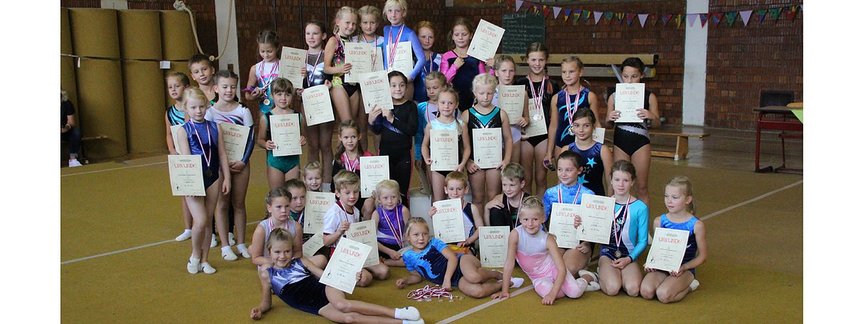 Am Samstag 10.00 Uhr gab es dann von Frau Angelstein für die Altersklassen 6 / 7 / 8-9 und 10-11 den Startschuss und insgesamt 36 Kinder vom Arterner Turnverein und vom SV Glückauf turnten um die begehrten Medaillen. Geturnt wurde an vier Geräten Balken, Boden, Sprung und Reck (Stufenbarren), bei den Jungs kam der Parallelbarren hinzu. Für die Altersklassen gab es ab vier Turner/Turnerinnen noch eine Gerätbestenermittlung. Ein Novum war von Sebastian Merker ( Kampfrichter des Thüringer Turnverbandes) das eigen entwickelte Berechnungssysthem und die neu ausgebildeten Kampfrichter aus Artern und Sondershausen hatten ihre Feuertaufe!