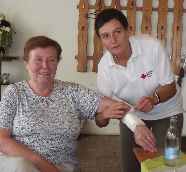 Bei Monika Menz wurde eine Blutung am unteren Arm mit einem Druckverband versorgt.