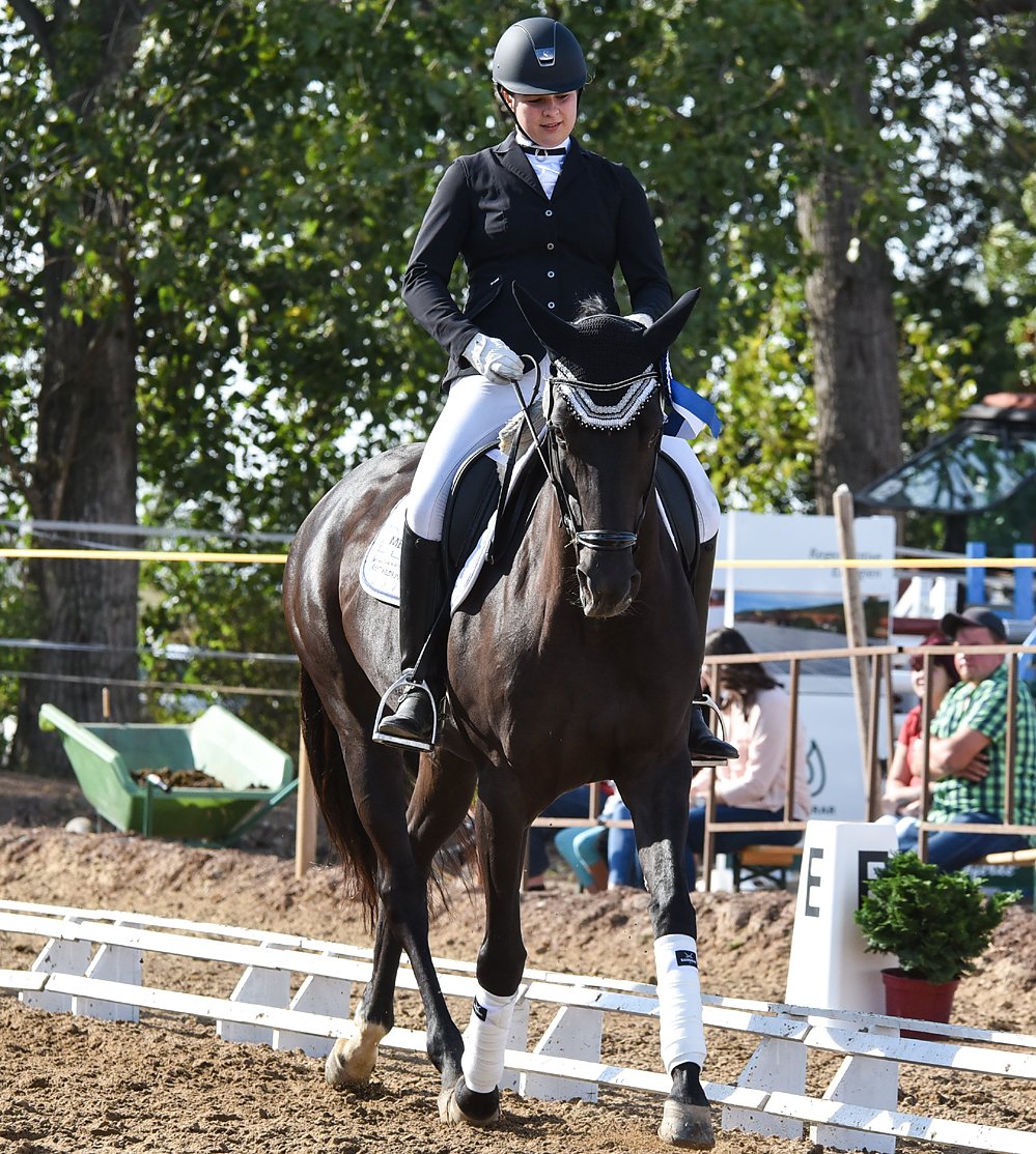 Die M Dressur war die Hauptprüfung an diesem Tag, hier gingen 17 Reiter-Pferd-Paare an den Start, sie ließen in den Trabverstärkungen die Pferdebeine über das Viereck schweben. Die Richter Wolfgang Meier und Thomas Müller belohnten den besten Ritt mit einer Wertnote von 7,1, diese ging an Gina Harrlandt von der PSG Pony Power. Marc Roßmann stellte für den gastgebenden Verein die Stute Cira, im Besitz von Jennifer Seidel vor. Auch er konnte sich mit ihr platzieren und erhielt die grüne Schleife.