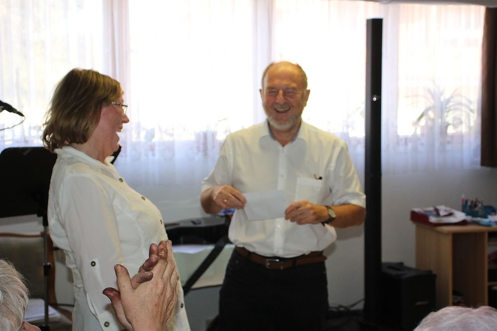 Gast gestern war auch, und das nicht zum ersten Mal, Landtagsmitglied Manfred Scherer (CDU). Er hatte auch einen Umschlag dabei, um das gestrige Fest zu unterstützen. Im Gespräch mit Heidi Meister verriet er, er wird bei der nächsten Wahl zum Thüringen Landtag nicht mehr antreten.