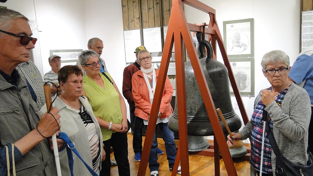 Punkt elf Uhr fanden wir uns wieder zusammen. Die Museumsleiterin begrüßte uns und führte uns durch die Glockenausstellung. Der Bogen war weit gespannt. Von kleinen Glocken vergangener Kulturen als Kult- und Signalinstrument, über die Entwicklung der Turmglocken verschiedenster Größen, bis zu Schiffs-, Hand-, Tier-, und Musikglocken erfuhren wir viel Wissenswertes. Ein weiterer Teil der Ausführungen galt der Glockenherstellung. Es bedarf vieler Arbeitsgänge bis eine Glocke gefertigt ist, die gut klingt und schön aussieht.