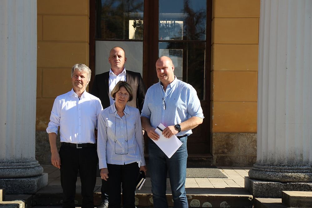 Intendant Daniel Klajner, Leiterin des Schlossmuseum Christa Hirschler, Sondershausens Bürgermeister Steffen Grimm und oben Schlossverwalter Manuel Mucha.