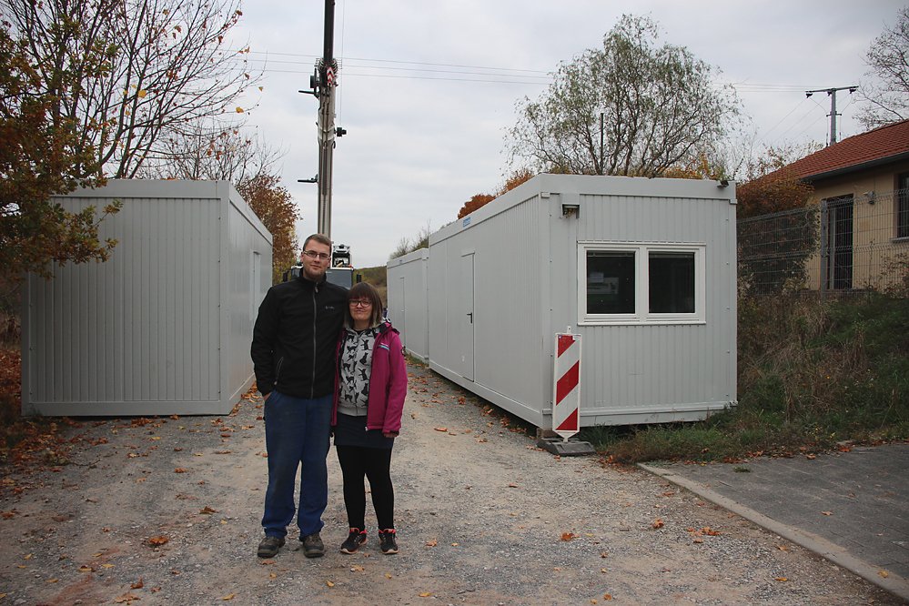 Mitglieder vom Team hatten sich heute am Gelände in der Schachtstraße von Sondershausen eingefunden, weil der entscheidende Schritt für verbesserte Katzenunterkünfte auf ihren vorgesehenen Platz transportiert werden.