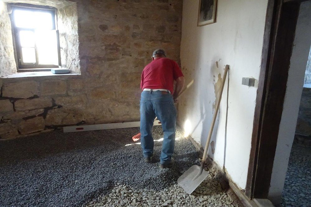 Die Abriss-und Ausschachtungsarbeiten sind in Eigenleistung vom Mühlenverein durchgeführt worden. Die fachgerechte Verlegung des neuen Fussboden erfolgt durch die Mitarbeiter der Zimmerei. Diese Arbeiten werden noch bis Ende dieser Woche andauern. Im Anschluss können die Wohnräume wieder mit dem teilweise noch original von den letzten Müllersleuten erhaltenem Mobilar eingerichtet werden. Schon in der kommenden Woche haben sich Wandergruppen zu einer Mühlenführung angemeldet. Da muss alles fertig sein.