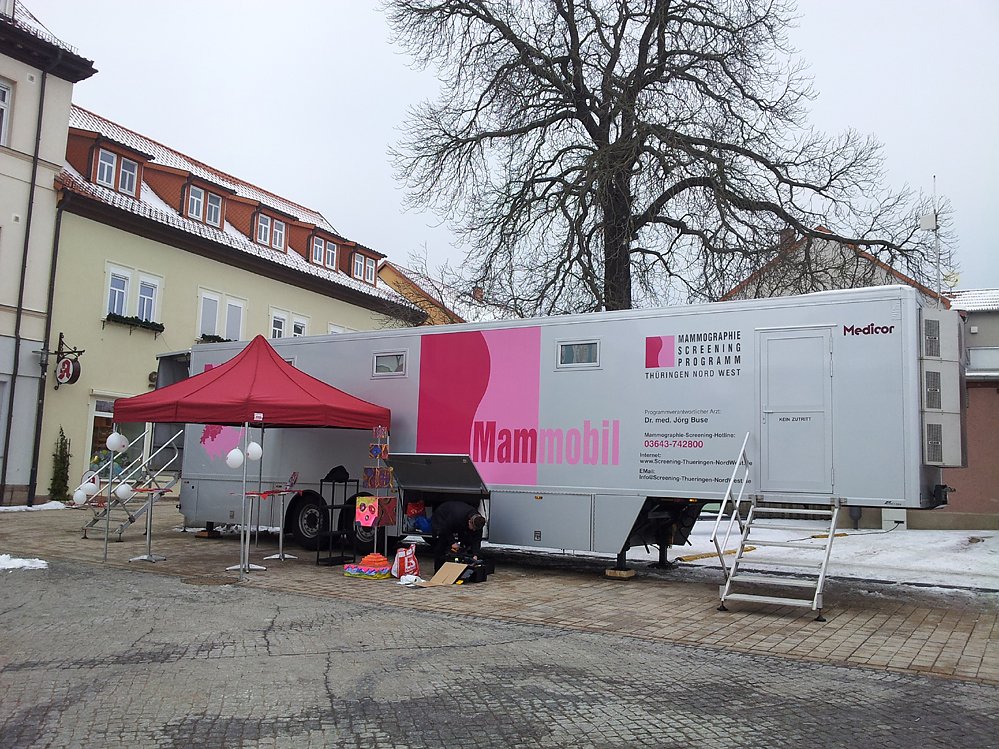 Das Mammobil steht zwischen dem 06.Dezember 2018 bis Mitte Januar 2019 in Bad Frankenhausen wie auch vor 2 Jahren wieder auf dem Markt gegenüber dem Rathaus. Es werden die Frauen wohnhaft in den Postleitzahlen 06567 Bad Frankenhausen, 06578 Bilzingsleben und 99707 Kyffhäuserland dorthin eingeladen.