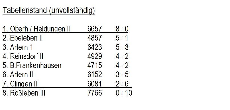 Vom 5. Spieltag in der Kegeln – Kreisliga liegen diese Ergebnisse vor...