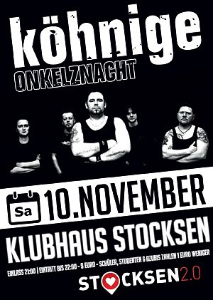 Lange hat es gedauert, aber nun ist es endlich soweit: Das Klubhaus Stocksen lädt zur Onkelznacht mit der Band KÖHNIGE...