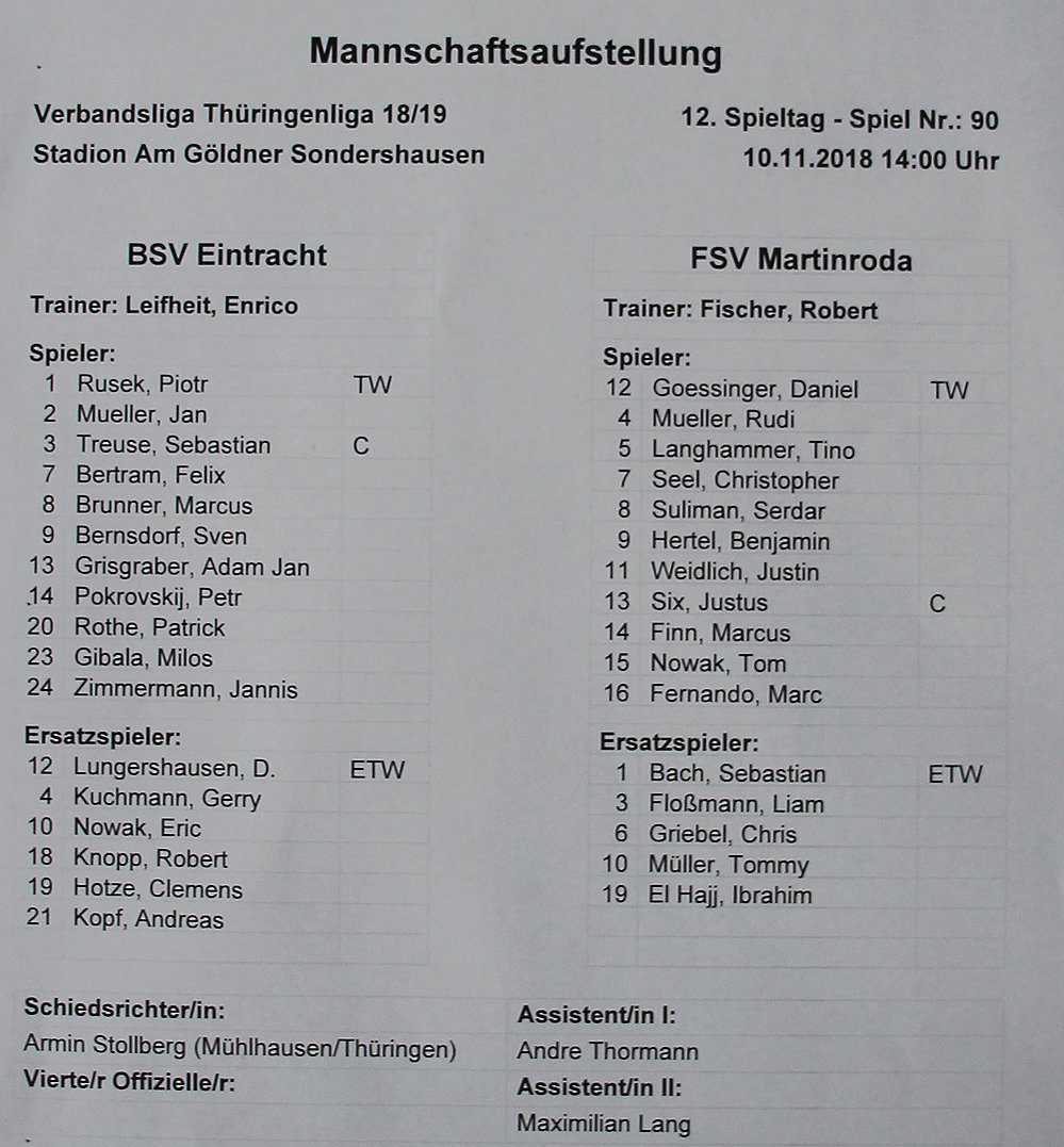 Autor: khhIn der Verbandsliga Thüringen kam es heute zum Spiel BSV Eintracht Sondershausen gegen FSV Martinroda und anders gesagt, der 12. der Tabelle mit 13 Punkten gegen den 2. der Tabelle mit 27 Punkten.