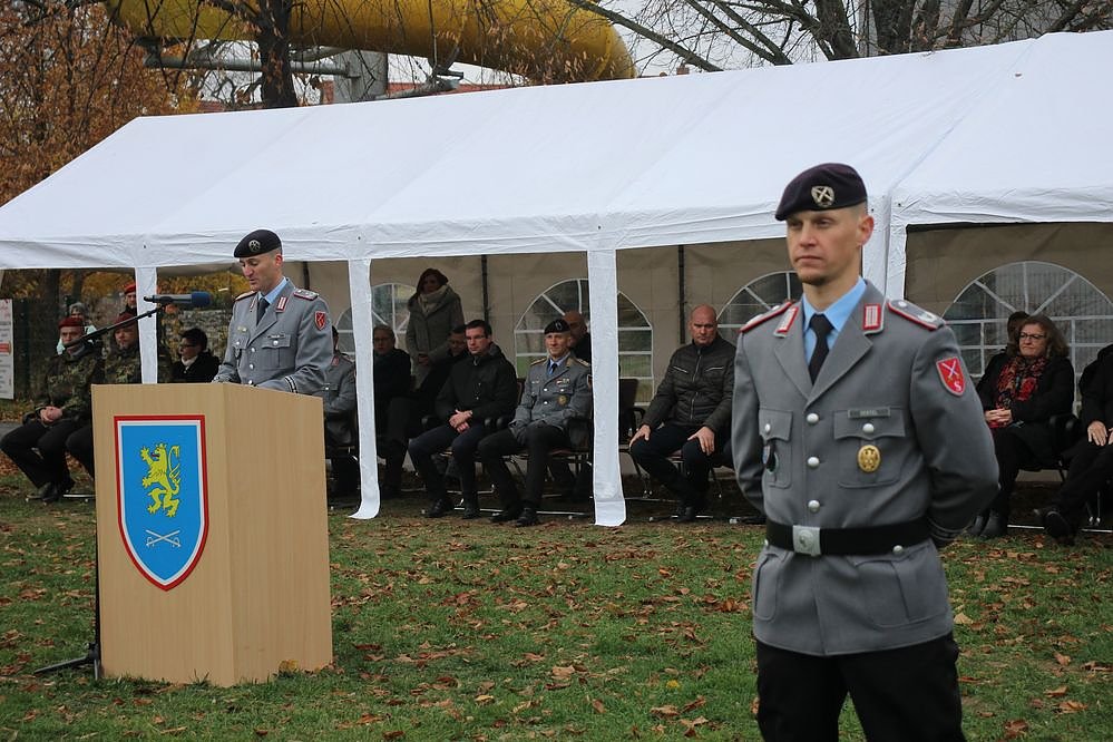 Bei diesigem Herbstwtter wurden in einem öffentlichen Appell rund 330 Soldatinnen und Soldaten des Feldwebel-/Unteroffizieranwärter-Bataillon 1 (FA/UA-Btl 1) vereidigt. Der jüngste Teilnehmer war 17 Jahre, der älteste Teilnehmer 49 Jahre alt. Der am weitesten entfernt liegende Heimatort eines Aspirant liegt über 500 Kilometer entfernt.