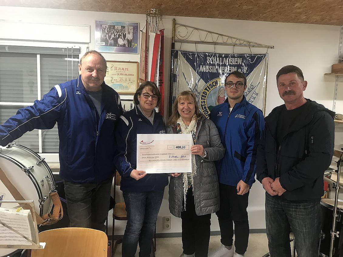 Am Freitag besuchte sie in Voigtstedt den Schalmeienmusikverein 1952 e.V. und übergab einen Scheck in Höhe von 400 €. Der Verein hat 20 Mitglieder und brauchte dringend Unterstützung für Instrumente die zur Reparatur mussten.