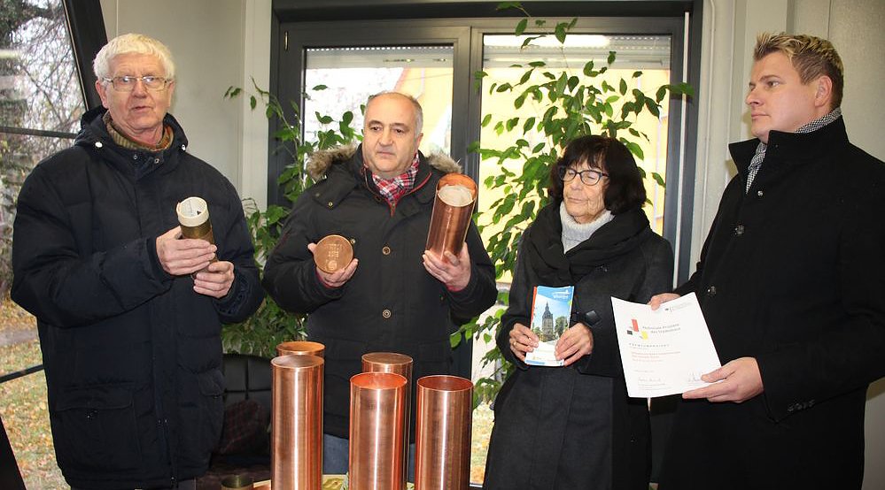 Peter Zimmer, Museumsleiter Regionalmuseum Dr. Ulrich Hahnemann, Bärbel Köllen vom Förderverein des Schiefen und Bad Frankenhausens Bürgermeister Matthias Strejc (SPD).
