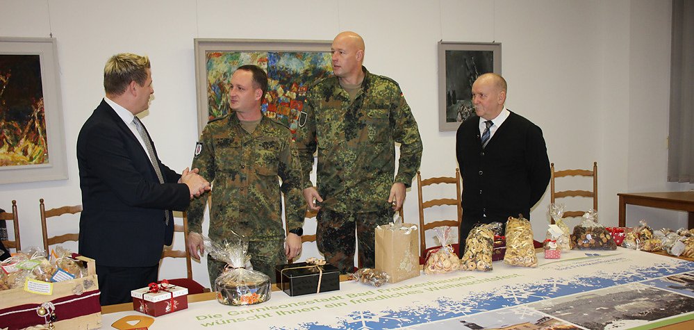 Am Vormittag übergab Bad Frankenhausens Bürgermeister Matthias Strejc an den stellvertretenden Kommandeur des Panzerbataillon 393 Oberstleutnant Jan Ohrmann die kostbare Ladung, im Beisein des Standortältesten Bad Frankenhausens Oberstleutnant Matthias Paar vom Versorgungsbataillon 131 Bad Frankenhausen und dem 1. Beigeordneten Dr. Andreas Räuber.
