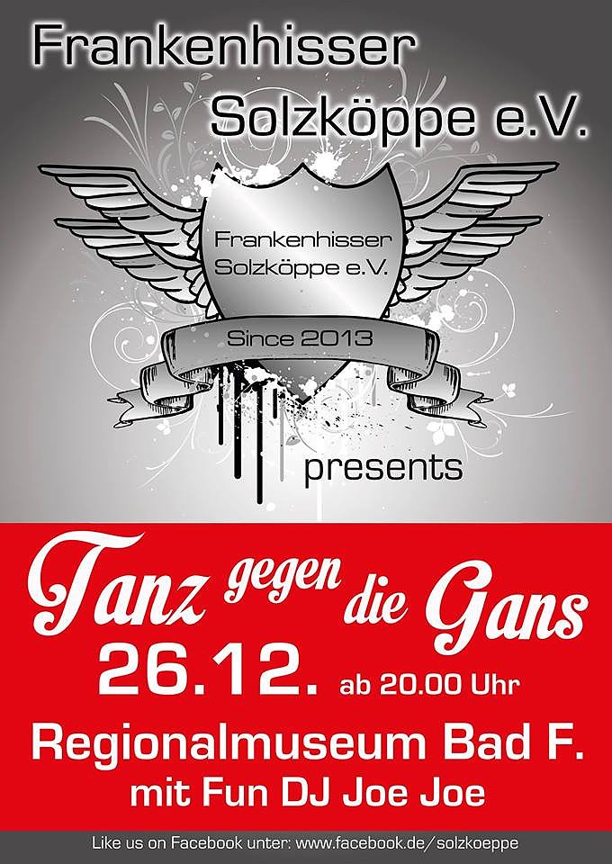 Autor: khhDas Jahr ausklingen lassen wird der Kulturverein der Kurstadt Frankenhisser Solzköppe mit der tradtionellen Tanzveranstaltung Tanz gegen die Gans im Bad Frankenhäuser Schloß.