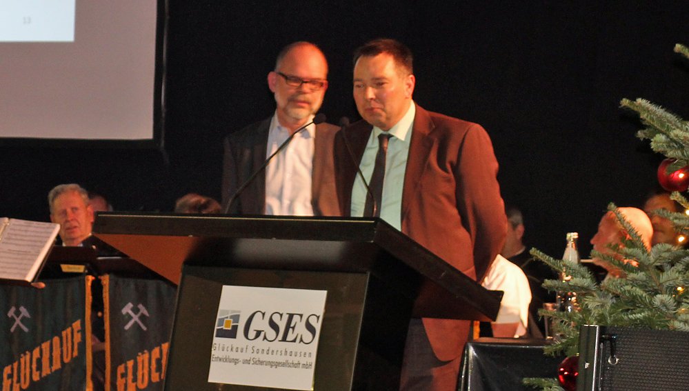 Im Rahmen der Barbarafeier waren zahlreiche Gäste in den Festsaal nach unter Tage gekommen, so Dr. Caspar Glinz (Hauptgesellschafter Schmidt, Kranz und Co. GmbH), die Lantagsmitglieder Babett Pfefferlein (Grüne), Dorothea Marx (SPD) und Manfred Scherer (CDU), Landrätin Antje Hochwind, Sondershausens Bürgermeister Steffen Grimm (pl), der Leiter des Thüringer Landesbergamtes Hartmut Kießling, sowie Führungskräfte der V.V.G Verwertungs- und Vertriebs GmbH, vom Schachtbau Nordhausen und der Hochschule Nordhausen.