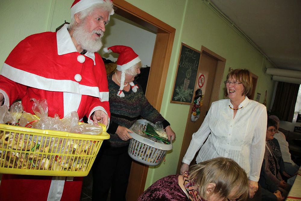 Und auch der Weihnachtsmann war da, der gar eine Helferin dabei hatte. Mit viel Spaß verteilten Dorothea und Jürgen Kieper kleine Geschenke.