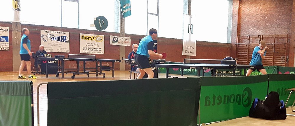 Es fing mit den Eingangsdoppeln an, Doppel 1 John/John führte im Entscheidungssatz 9:8 und musste dann 3 Nasse ( Netz- oder Kantenbälle ) hinnehmen und verlor dadurch 9:11 ; dem Doppel 2 Steige/Wagner erging es nicht anders, bei einer 10:8 Führung im 5. Satz kamen die Gastgeber durch 2 Netzbälle auf 10:10 heran und siegten danach 12:10.
