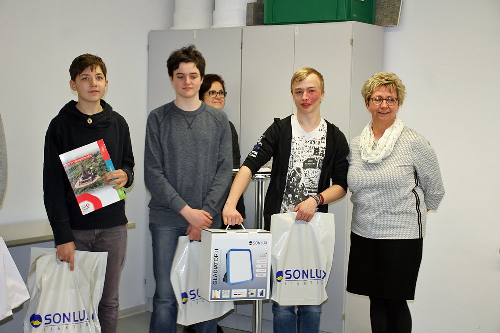 Steffen Schöllhorn von der Fa. Sonlux Sondershausen hatte für die siegende Schule nicht eine Leuchte im Gepäck, die an Frau Klinger übergeben wurde.