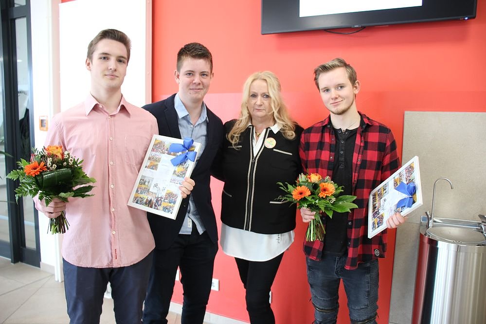 Zum Empfangskomitee gehörten die Klassensprecher Phillip, Jonas und Etienne, die Schulleiterin der Grundschule Kerstin Gast, sowie Lisa und Frederika, die bereits mit ihrem Blumenstrauß beim Chor war. Zur Begrüßung wurde die heimliche Hymne Thüringens gesungen, das Rennsteiglied.