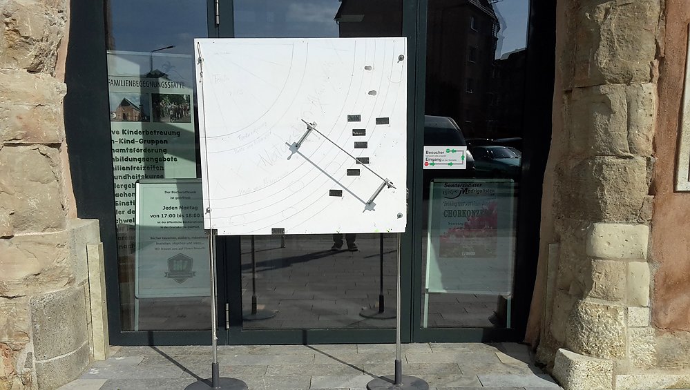 Und auch am Bürgerzentrum Cruciskirche hat sich etwas getan. Da ist doch glatt eine neue Sonnenuhr aufgetaucht.