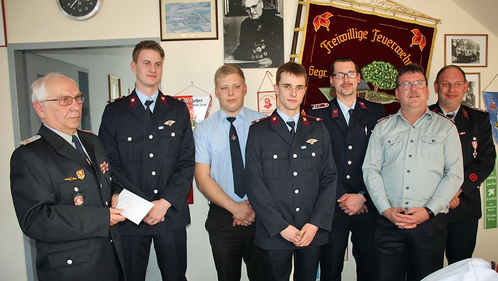 Die Wettkampfmannschaft der Wehr erhielt vom Feuerwehrverein ein Geldzuwendung in Höhe von 200 Euro als "Spritgeld" für die Fahrt zu einem Wettkampf auf der Insel Poel. Bürgermeister Steffen Grimm legte 100 Euro dazu.
