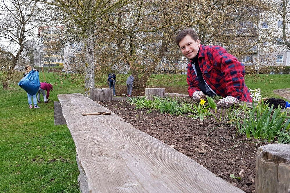 Der Garten der Generationen wurde vom Müll und Laub befreit, die Hochbeete vorbereitet und der Weg gesäubert. Beim letzten Sturm war ein kräftiger Ast gebrochen – daraus soll ein Igelquartier entstehen. In den nächsten Wochen werden die Beete bepflanzt, die Strauchhecke erweitert und die Bänke gestrichen.