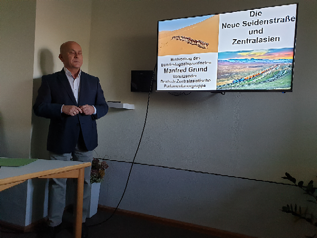 Auf eine Reise über die neue Seidenstraße nahm am Montag, dem 15. April 2019, der Bundestagsabgeordnete Manfred Grund rund 30 Gäste mit. Die Ländliche Heimvolkshochschule Thüringen e. V. hatte zu dem Bildvortrag ins Kloster Donndorf eingeladen.